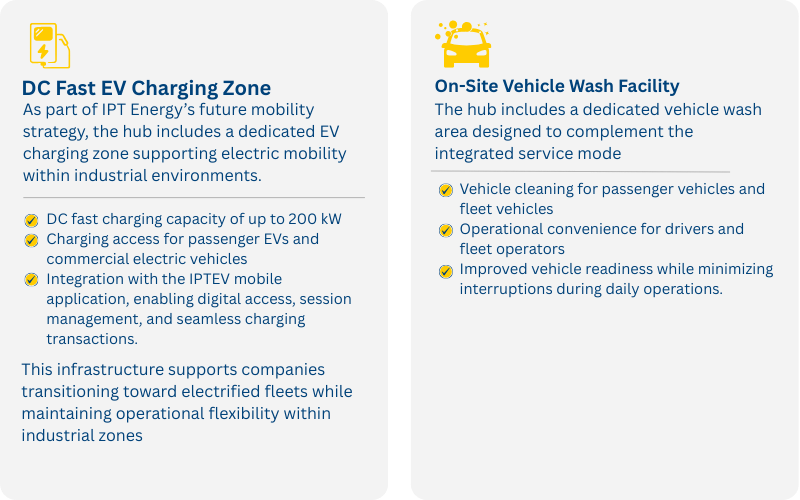 This hub represents a strategic evolution in IPT Energy’s operating model in the UAE. Moving beyond traditional fuel distribution activities, it introduces a fully integrated industrial energy and mobility platform designed to support fleet operators, logistics companies, contractors, and industrial partners operating in high-demand environments.