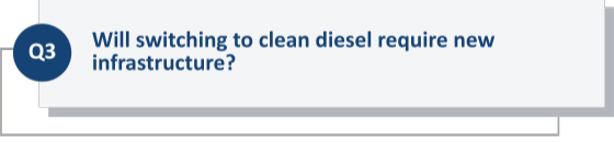 No. Fleets can use 10 PPM clean diesel with existing infrastructure, making it a practical and immediate transition.
